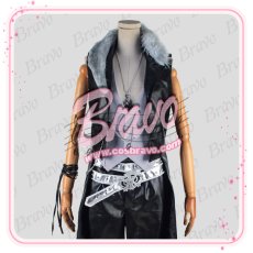 黒い開襟のローグコートです。ふわふわした襟はクールな感じがあります。