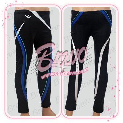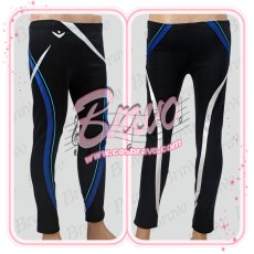 黒を基調したナイロン、ポリエステル生地にて製作します。長い式で、白い図案と白、青のラインが付き、弾性力のいい生地にて製作し、本物の水着用でも大丈夫です。