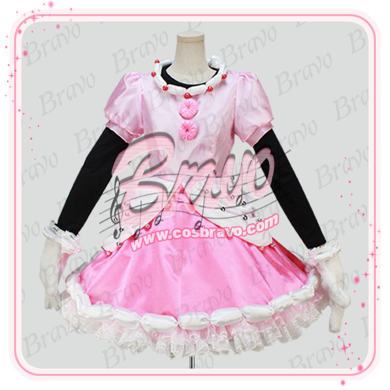 ピンクを基調したサテン生地にて製作します。襟の部分には特別に首飾りが付きます。裾の部分はレースが配置し、腰部分の蝶結びは整体のかわいさをアップする、ケーキみたいの甘さが溢れています。