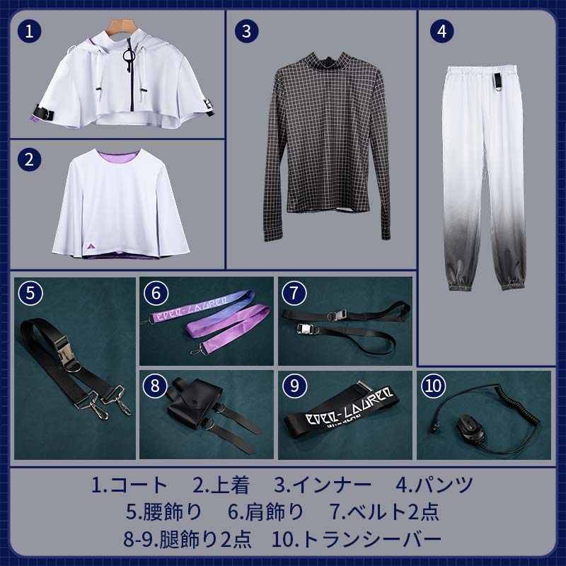 【商品名称】:バーチャル YouTuber Vtuber Dytica 小柳ロウ 変身後 コスプレ衣装■セット内容:計19点マント、上着、インナー、パンツ、飾り物(フード、耳2点、目隠し、房…