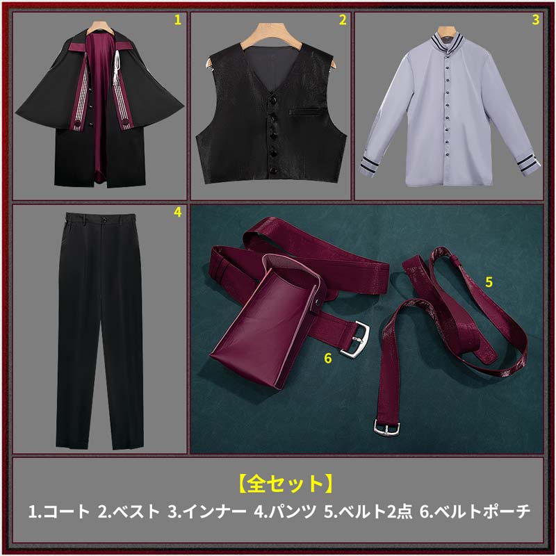 コート、ベスト、インナー、パンツ、飾り物(ベルト2点、ベルトポーチ)